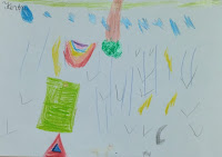 Depois de criarmos o nosso poema ao contrário, fizemos as ilustrações que, claro, também representam tudo ao contrário.
